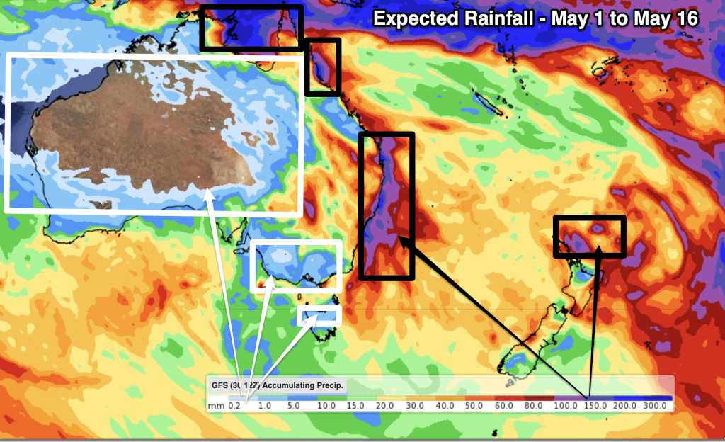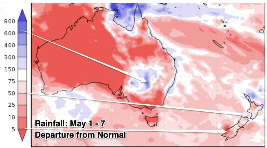 May is likely to lean drier than average, but in saying that there’s still some follow up wet weather for some regions. Despite some cooler days and nights, we still expect May to lean a little warmer than average.