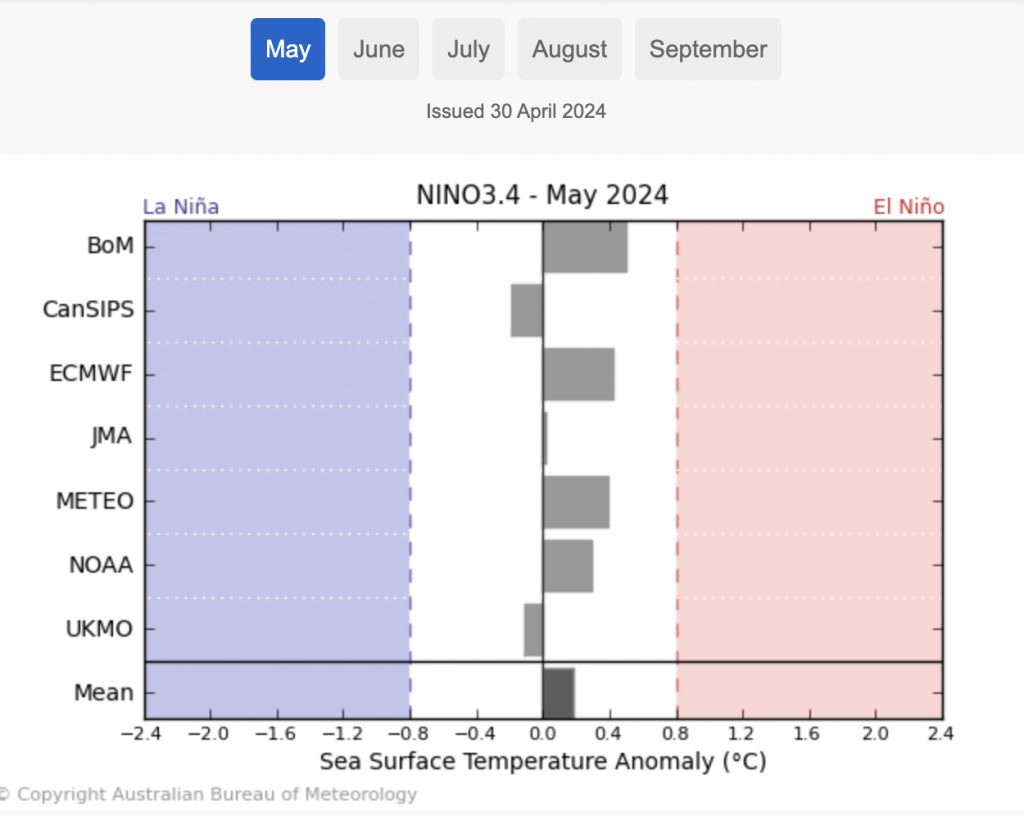 According to the Bureau of Meteorology(BoM) – El Niño is now over.BoM’s model of all models, shows we’re very much in Neutral now…and will likely be here well into Spring.What the various Government Agencies around the world say. (NIWA modelling from NZ is excluded from this graphic as they don’t provide open data, unlike the rest of the modern world. NIWA is sadly fiercely commercial these days – or they don’t have faith in their modelling being openly displayed due to it’s very poor accuracy).