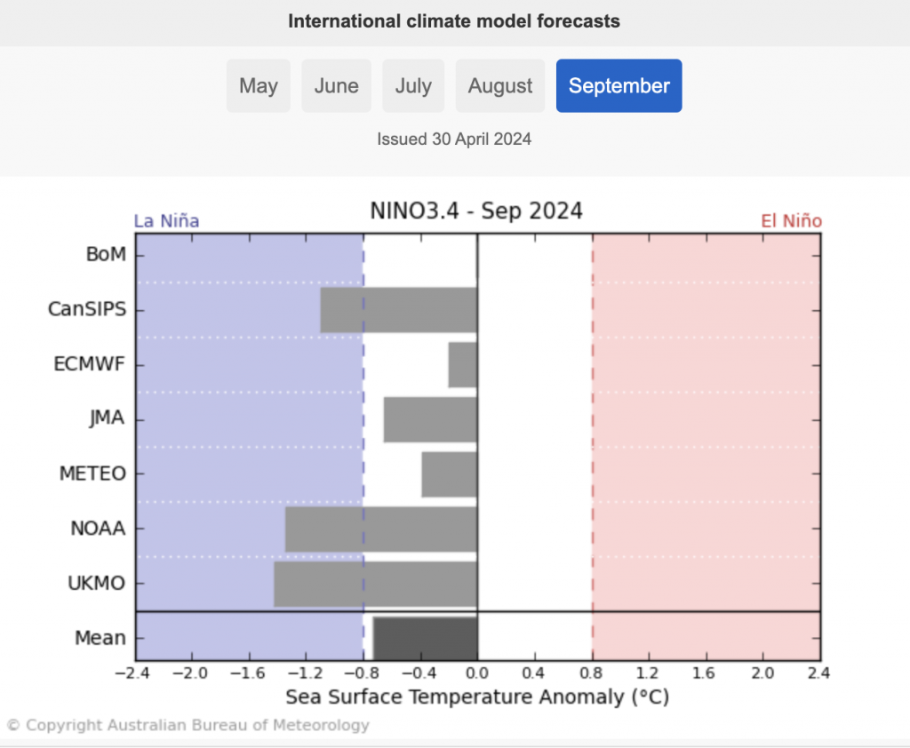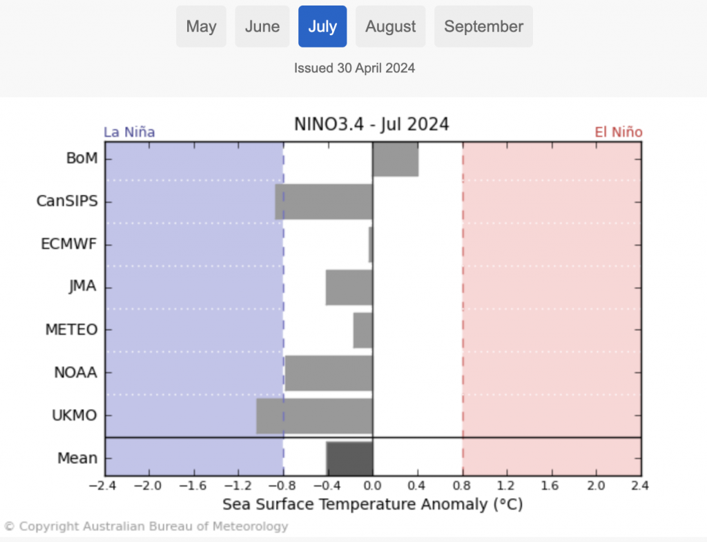 Generally speaking the Neutral pattern we’re in now means there is more variability – but don’t expect any dramatic changes just yet. International modelling suggests the neutral phase will last for the rest of winter and possibly well into spring, so talking beyond that is fairly unhelpful at this stage. Various models still disagree on what happens later this year – so for now we’re best to focus on the upcoming winter and how the fading El Niño weather pattern is going to look.