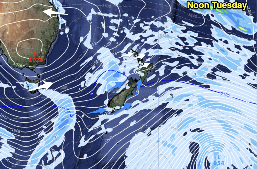 High pressure near Australia is encouraging colder winds into NZ… but by Saturday that high will be anchored near The…