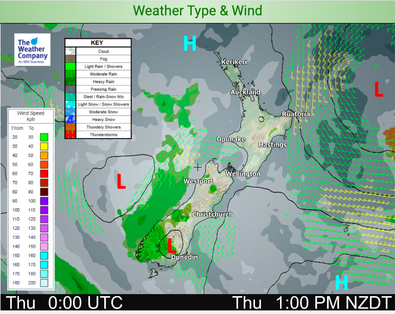 With flat air pressure expect light winds and sea breezes in a number of places. Areas that stand out with a slightly windier set up will be the eastern North Island (like Mahia Peninsula to Gisborne), also through Cook Strait and around Otago Peninsula. No where has severe winds or overly strong winds forecast.