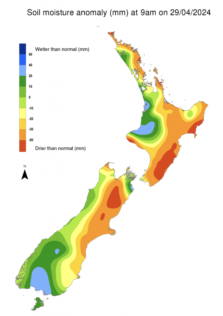 Map Courtesy: The Moana ProjectEl El Niño may be technically gone but the weather pattern it created is still with our part of the world. This is evident by looking at the soil moisture maps, which show eastern and north-eastern parts of both main islands leaning drier than average still. Map created by the National Institute of Water & Atmospheric Research, a 100% Government Agency / Crown Institute.