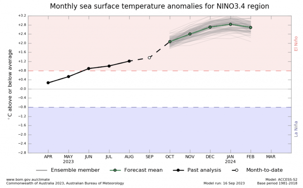 Over a year ago El Niño was first publicly discussed by forecasters in the media, saying it was likely to come in around winter or early spring in 2023. While it took longer than usual for the atmosphere to couple to the sea surface temperature changes, weather patterns in recent weeks have been much more El-Niño-like across New Zealand and Australia.