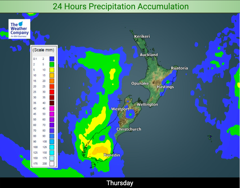 Minimal risk of severe weather in NZ next 48 hours although rain may become heavier in some parts of the southern half of the South Island overnight New Year’s Eve and into New Year’s Day. Places like Central Otago and South Canterbury may need special attention for rainfall with these dry areas exposed to some heavier downpours.